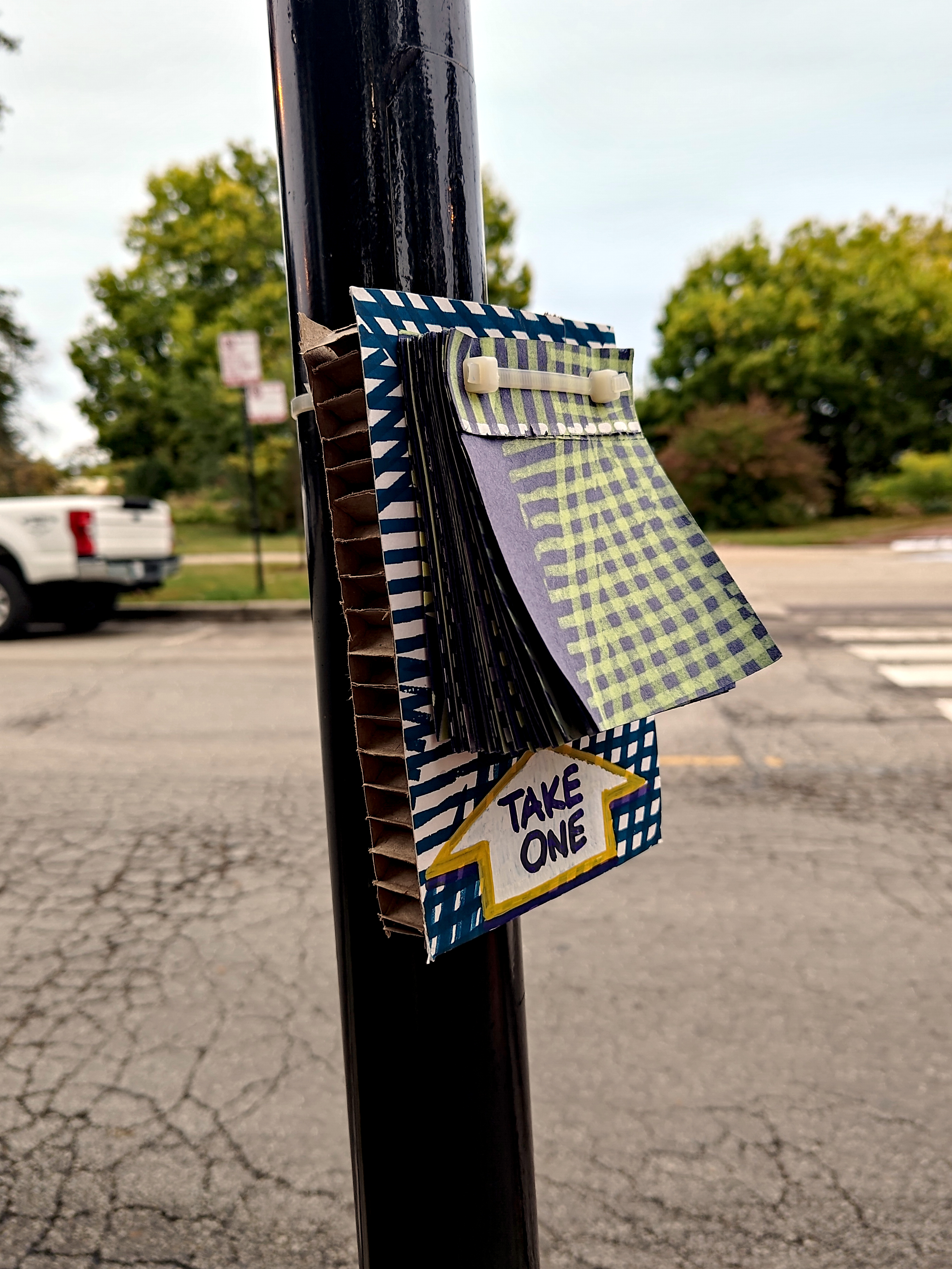 Made with a large stack of scraps, this poster takes its form from page-a-day calendars. It was installed in Lincoln Park, Chicago, near the farmer’s market and zoo.